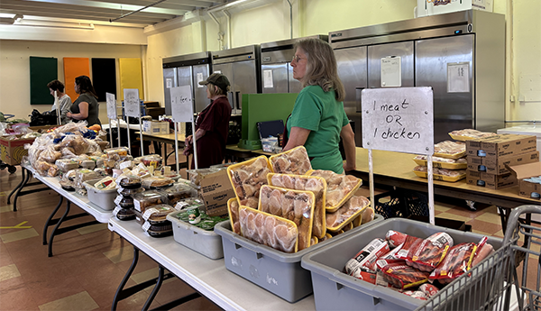 NOTE: If you do not have a car, walk up to the door of the pantry and check in and get food.